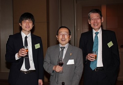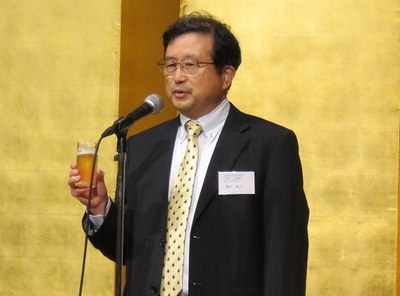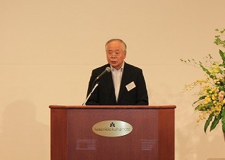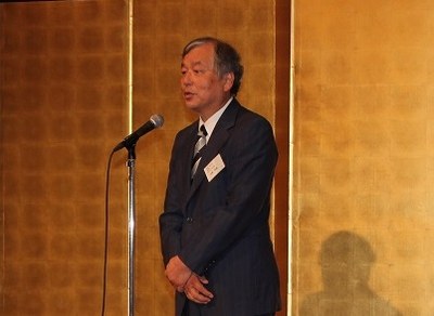 | 講演会終了後に開催された交流会では、まず古島幹雄熊本大学理事(副学長、昭和51年理学部卒)、本島昭男関西連合同窓会会長(関西武夫原会会長、昭和43年法文学部卒)からの挨拶があり、祝辞が述べられました。 | |