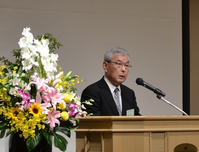 式典では、始めに、熊本大学同窓会連合会の岡村宏会長(昭和29年工学部卒)から設立の経緯について説明があり、次いで、九州連合同窓会の二塚会長より、満場の拍手の下「熊本大学九州連合同窓会」の設立宣言が行われました。