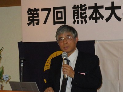 基調講演では、原田学長から平成28年(2016年)熊本地震の被害状況とその復旧と復興の進捗について報告がありました。熊本大学が、教育研究環境の復旧のみならず地域の復興に向けた取組を、学長のリーダーシップの下で全学一丸となって迅速に実施したことが、11月に発表された国立大学法人等の平成28年度評価においても、「特筆すべき進捗状況にある」との最高位の評価をうけたとの紹介があり、今後も教育?研究?社会貢献のさらなる高度化にむけて邁進することについて同窓会からの理解と協力を賜りたいとの依頼がありました。