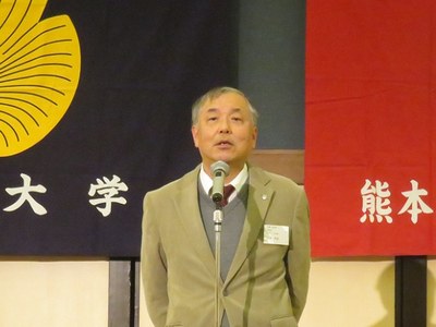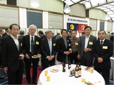 講演会終了後に開催された交流会では、まず古島幹雄熊本大学理事(副学長、昭和51年理学部卒)、峯健二関西連合同窓会会長(昭和52年工学部卒)、安田宏正九州連合同窓会会長(昭和42年法文学部卒)からの挨拶と祝辞が述べられ、江口工顧問(昭和28年工学部卒)の発声により乾杯が行われ、参加者 は賑やかに世代や学部を超えた交流を楽しみました。