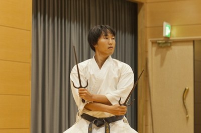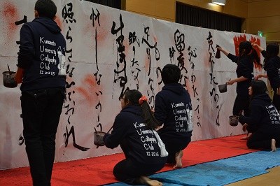 パーティでは、原田学長からの大学の近況報告、今年度の卒業生表彰受賞者の紹介の後、久しぶりの再会を楽しんでいただきながら、現役学生の活動紹介として、書道部(パフォーマンス書道)、マンドリンクラブ、古武道部、アカペラ(Higo-Pella)、チアリーディング部の演技、演奏等をご覧いただき、最後には、応援団による演舞の後、恒例の旧制第五高等学校寮歌「武夫原頭に草萌えて」を全員で大合唱して締めくくり、再会を約束し盛会のうちに閉宴となりました。