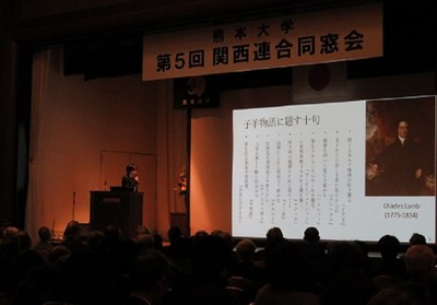 引き続き行われた講演会では、原田学長から「平成28年(2016年)熊本地震 被害状況と復旧に向けた対応状況」と題して、熊本大学の被害状況と復興に向けた取り組みについての報告が行われ、松岡浩史熊本大学文学部准教授から「漱石とシェイクスピア」と題し、夏目漱石来熊120周年、生誕150周年にちなんだ特別講演が行われました。