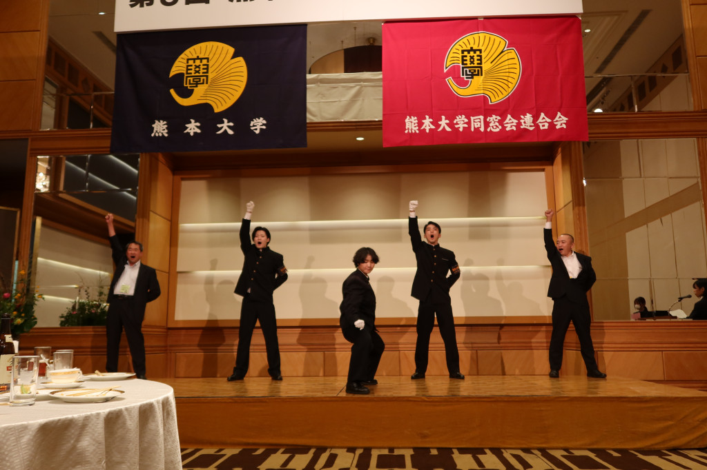 会の終盤では、恒例となっている応援団による「マーチングメドレー」、「巻頭言、五高寮歌」が披露されました。今回は、応援団OBの方も加わり、華やかな演舞となりました。