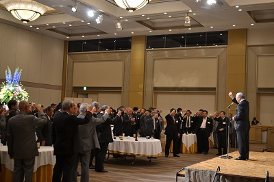 講演会終了後の祝賀会では、九州連合同窓会の先輩にあたる熊本大学東京連合同窓会の中野栄二会長(昭和42年薬学部卒)と熊本大学関西連合同窓会の西山多加志会長(昭和44年工学部卒)から挨拶が行われ、3つの連合同窓会で連携?協力し、共に母校を盛り上げていきたいとの言葉が述べられました。